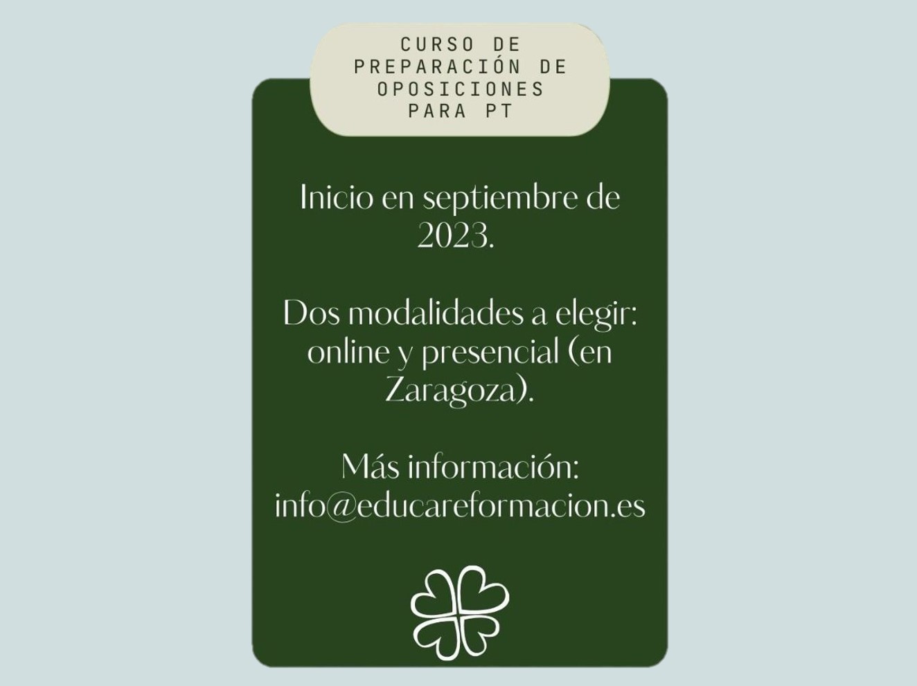 2 NUEVOS GRUPOS DE PT Abriremos dos nuevos grupos en septiembre de 2023, de un año de duración (hasta finales …